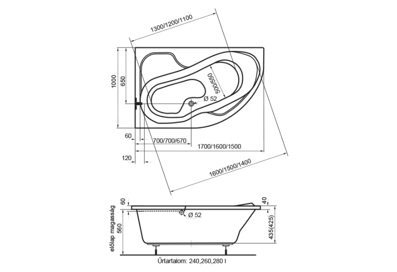 Fortuna aszimmetrikus kád 150x100 jobbos