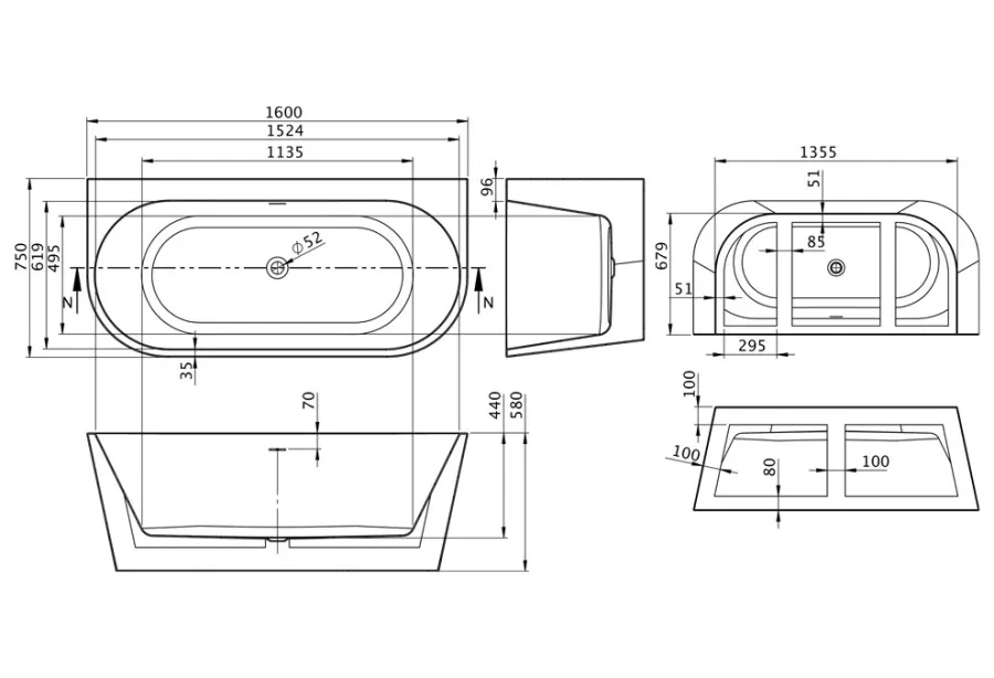 Optima különleges akril kád 160x75 Matt fekete előlappal