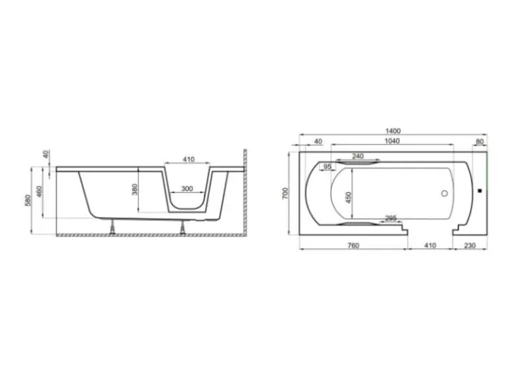 Héra akadálymentesített besétálós akril kád 140x70 balos