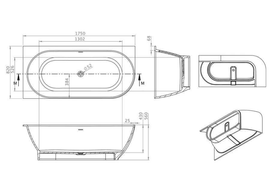 Lily különleges műmárvány kád 175x82 fekete előlappal, balos