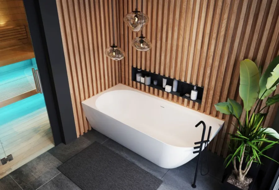 Lily különleges műmárvány kád 175x82 fehér előlappal, jobbos