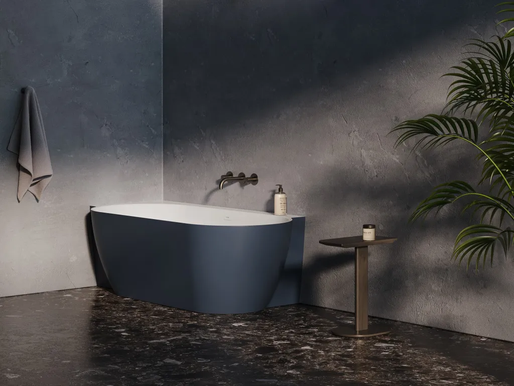 Freedom Corner II Tec 175x86 bal, akrilkád, Deepsea Blue/fehér, fehér/fekete/króm lefolyó