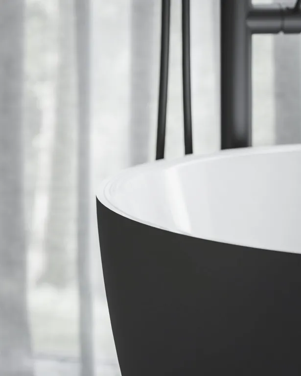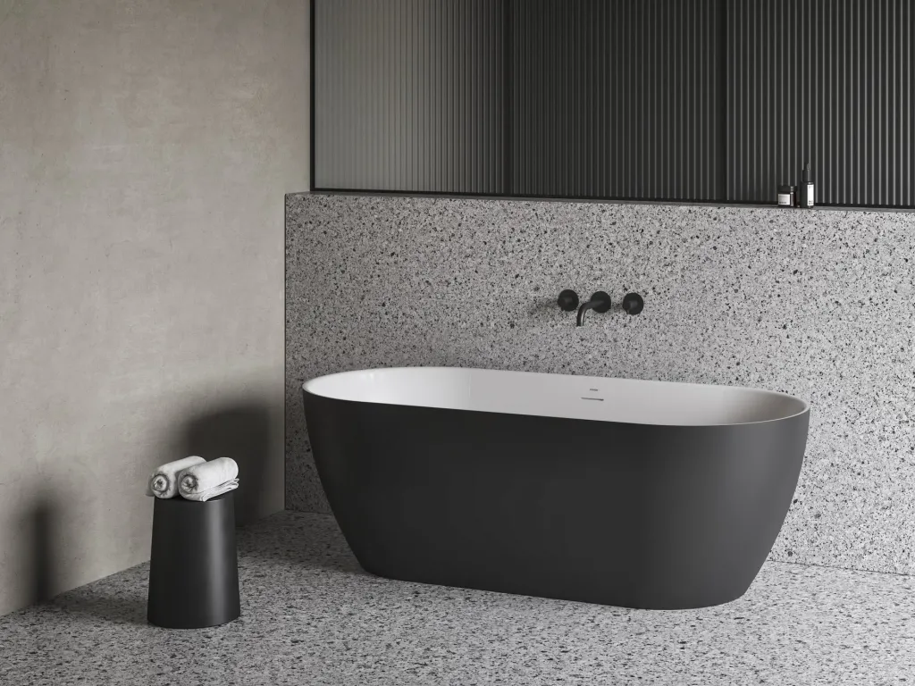 Freedom O Tec 170x77 akrilkád, fekete/fehér szabadonálló, fekete/fehér/króm lefolyó