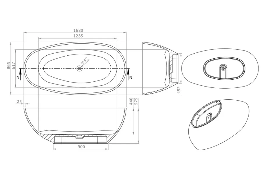 Vanilla szabadon álló műmárvány kád fekete előlappal
