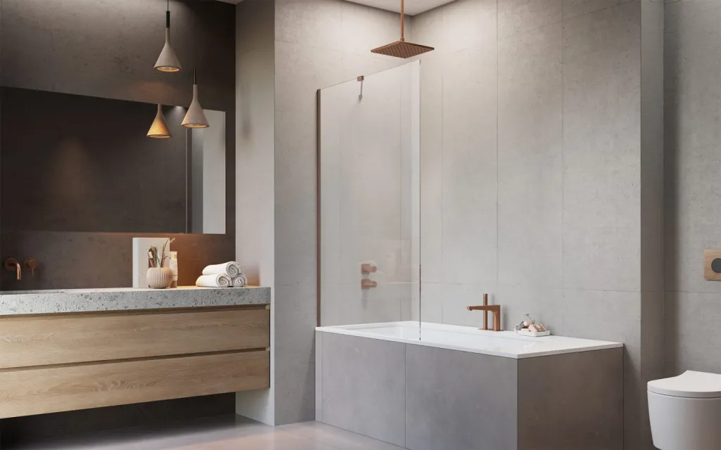 Modo New Brushed Copper PNJ II szálcsiszolt réz kádparaván 60 átlátszó