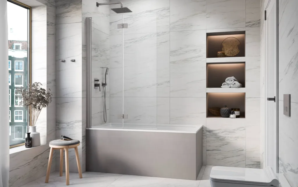 Nes Brushed Nickel PND I szálcsiszolt króm kádparaván 100 átlátszó balos