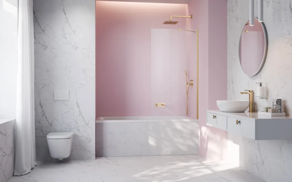 Idea Brushed Gold PNJ II szálcsiszolt arany kádparaván 50 átlátszó