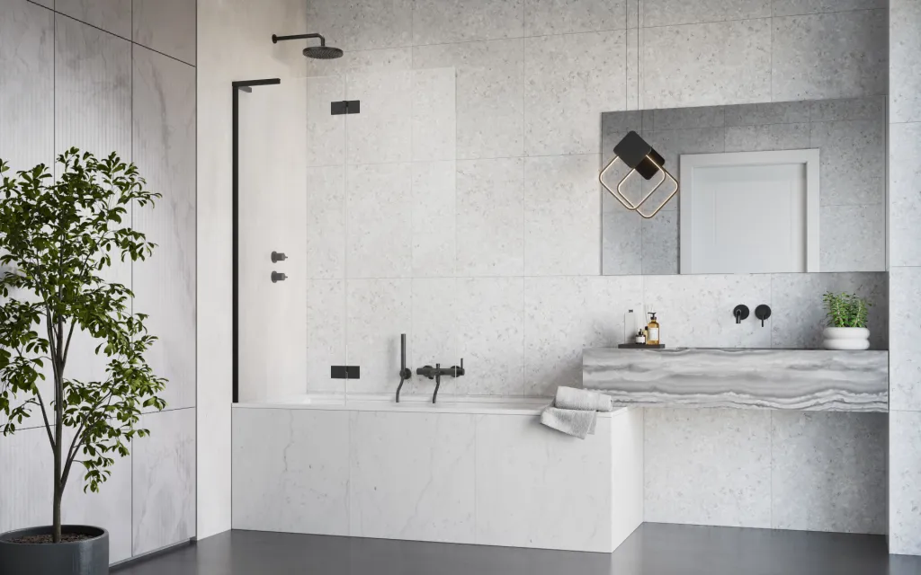 Essenza 8 SL Black PND II fekete kádparaván 140 átlátszó jobbos