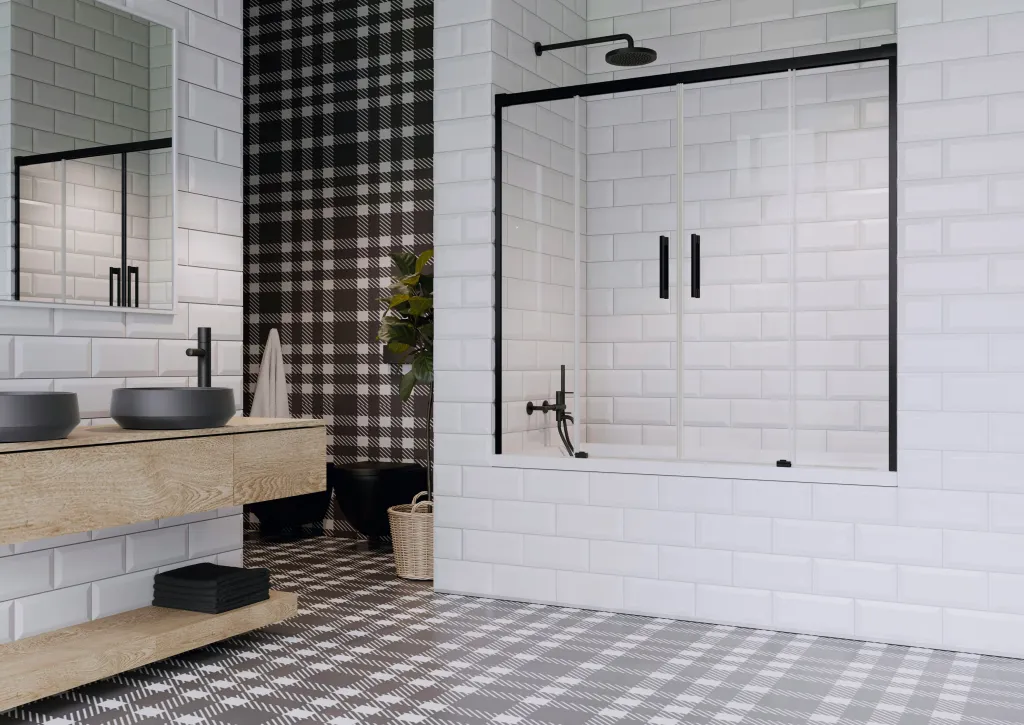 Idea Black PN DWD fekete kádparaván 180 átlátszó