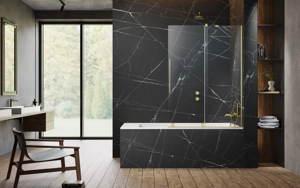 Furo Brushed Gold PND II szálcsiszolt arany kádparaván 160 átlátszó balos