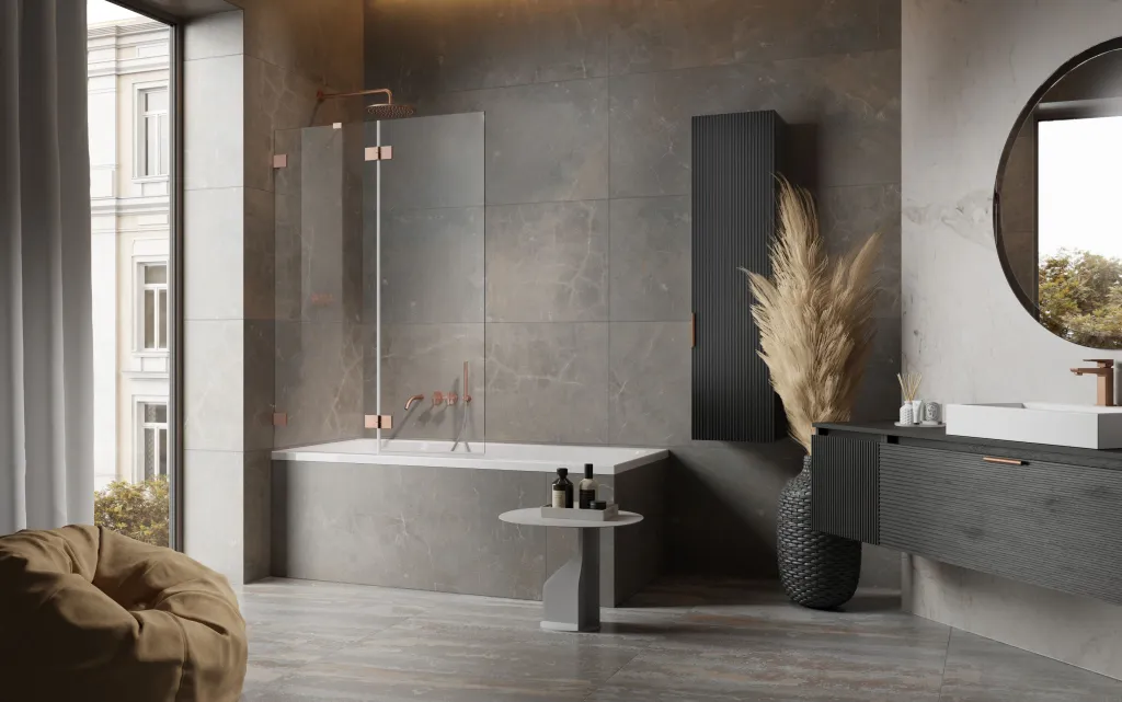 Essenza Pro Brushed Copper PND II szálcsiszolt réz kádparaván 130 átlátszó balos
