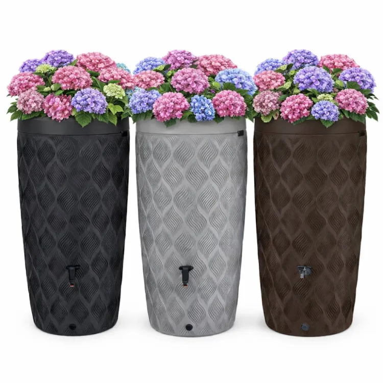 Uv stabil polietilén műanyagból gyártott esővízgyűjtő barna színben. Az esővízgyűjtő tartalmazza a fekete tömlőcsatlakozó kuplungos 3/4 colos csapot. A tartály falán ki van alakítva kettő darab belsőmenetes kifolyónyílás, melyben tetszőlegesen lehet bekötni a kifolyócsapot. Amenyiben nem kívánja a csapot betekerni, akkor a termékhez adott menetes lyuktakaróval tudja lezárni. Kettő darab lyuktakarót biztosítunk. Az esőgyűjtő hordó tartalmát egy kerek kaspó zárja. A kaspó tetőbe 4 kisebb cserepes növényt tud kényelmesen elhelyezni, vagy egy nagyobbat, de akár földdel is feltudja tölteni. A kaspót feltöltheti bárhogy, csak az Ön fantáziája szabhat határt. Az esővízgyűjtőt érdemes lezárni, mert kevésbé párolog a hordóban az összegyűjtött esővíz, valamint ha nem éri fény akkor az összegyűjtőtt víz nem fog algásodni. Amennyiben ráköti az ereszleömlőt a csatornájához, akkor az esővízgyűjtés zártabb rendszert biztosít. Az összegyűjtött víz fogyasztásra nem alkalmas, hiszen az ereszben gyűlt víz nem steril, csak öntözési célra alkalmas. Az esővízgyűjtés környezetbarát módja a kerti növények öntözésére. A hordótest dombormintás,mely erős és vastag.