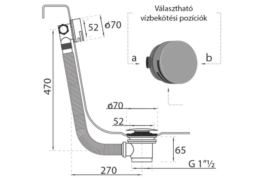 Vízfeltöltős, Click- Clack le- és túlfolyó kerek - matt fekete
