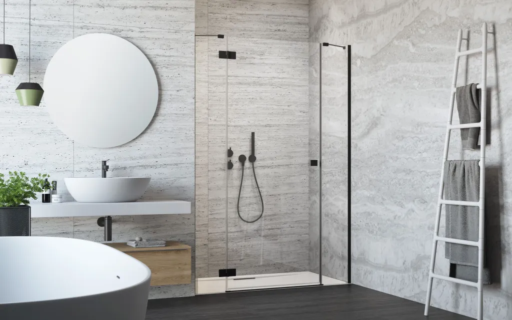 Essenza Black DWJS fekete zuhanyajtó 110 átlátszó balos