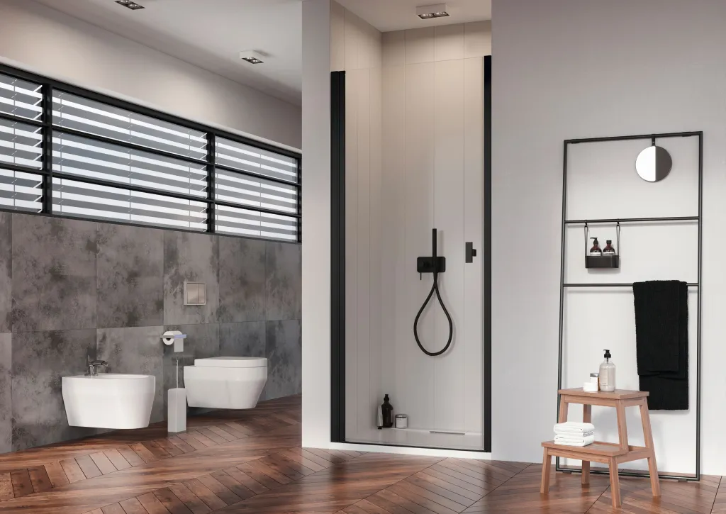 Nes 8 Black DWJ I fekete zuhanyajtó 70 átlátszó jobbos