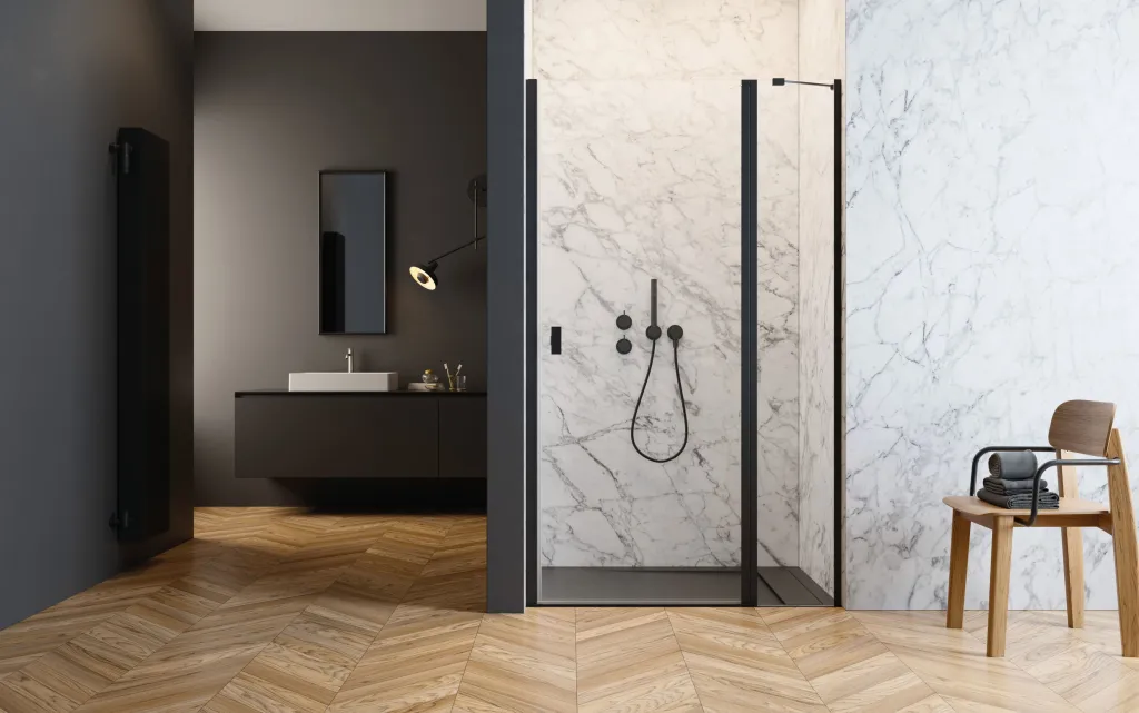 Nes 8 Black DWJ II fekete zuhanyajtó 110 átlátszó balos