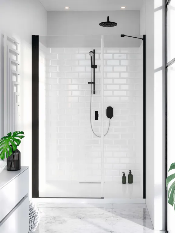 Nes 8 Black DWS fekete zuhanyajtó 130 átlátszó balos