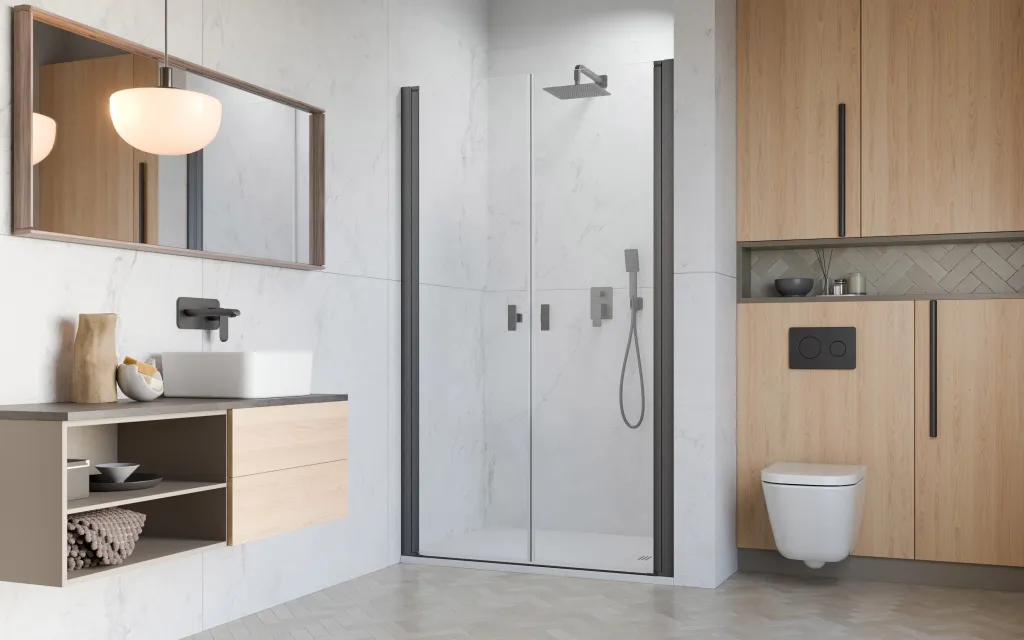 Másolat: Nes Brushed GunMetal DWD I szálcsiszolt fegyvermetál zuhanyajtó 100 átlátszó