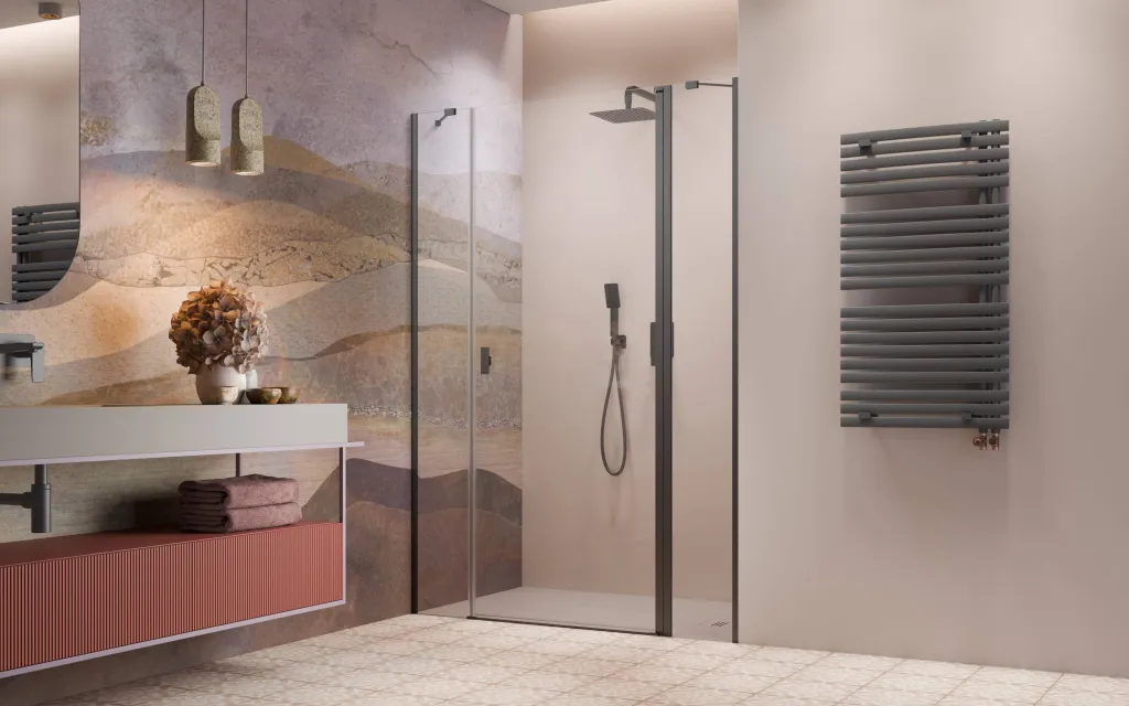 Nes Brushed GunMetal DWJS szálcsiszolt fegyvermetál zuhanyajtó 120 átlátszó jobbos