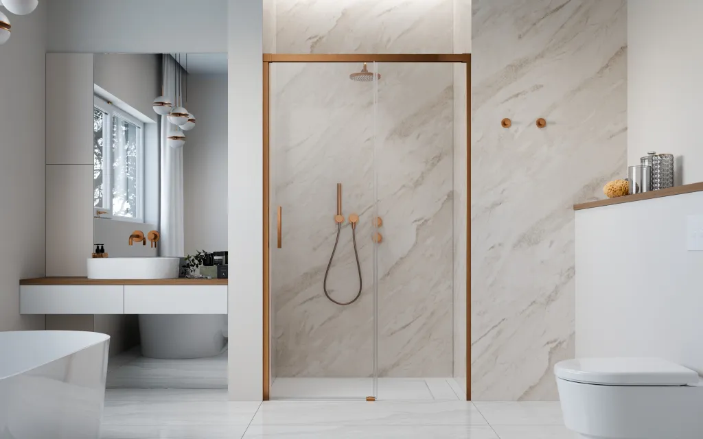 Idea Brushed Copper DWJ szálcsiszolt réz zuhanyajtó 160 átlátszó balos