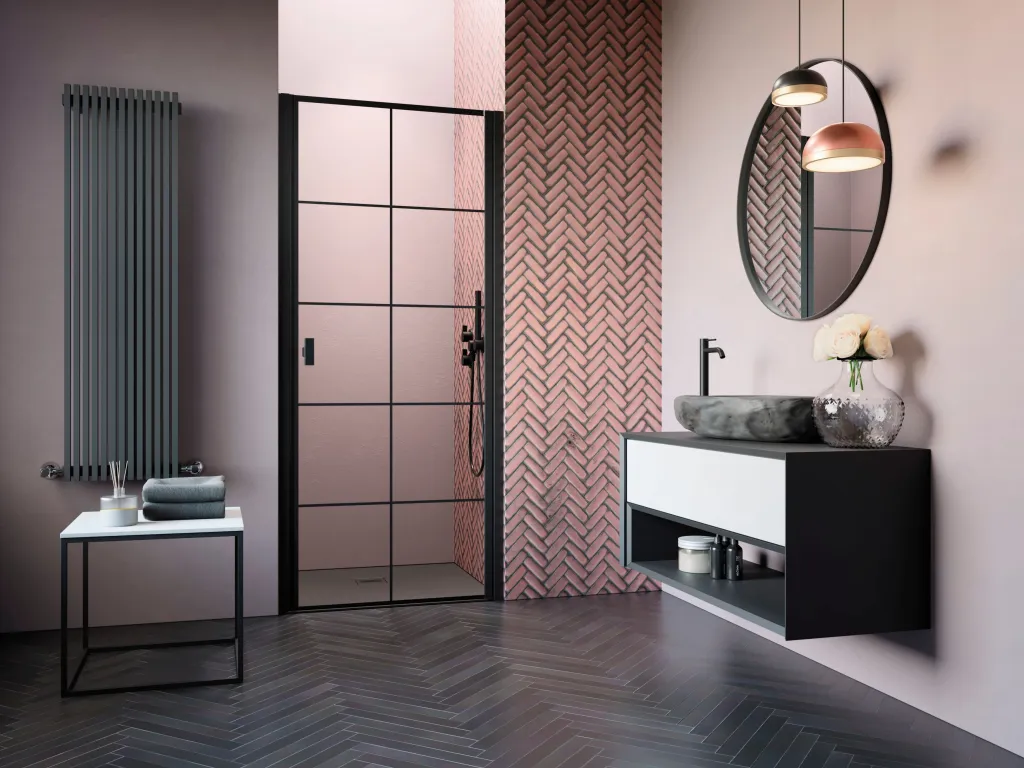 Nes 8 Black DWJ I Factory fekete zuhanyajtó 90 átlátszó balos
