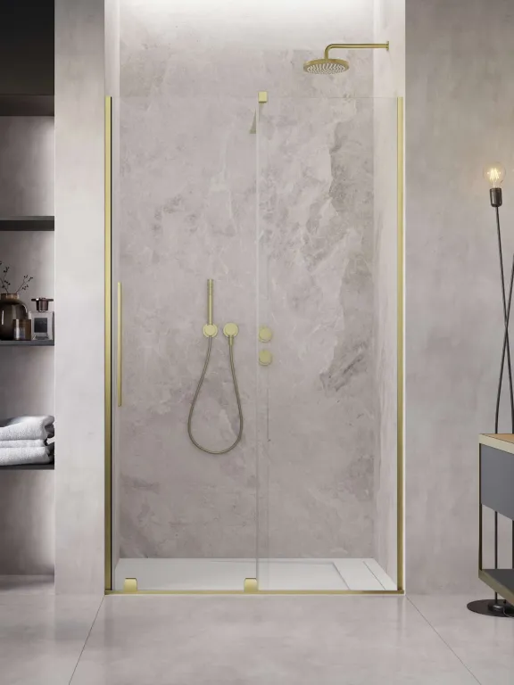 Furo Brushed Gold DWJ szálcsiszolt arany zuhanyajtó 90 átlátszó jobbos