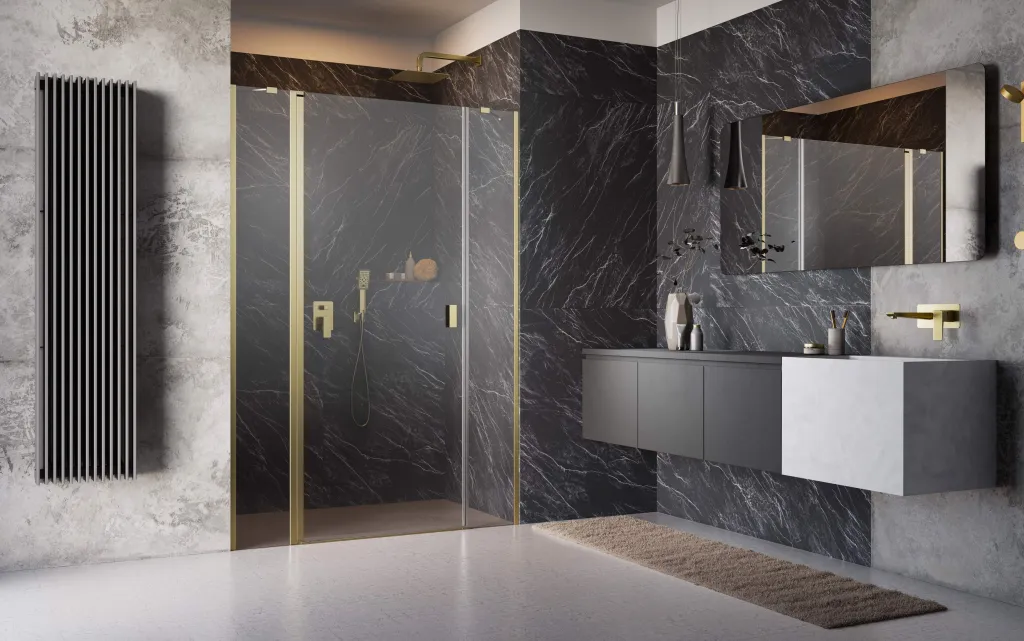 Nes Brushed Gold DWJS szálcsiszolt arany zuhanyajtó 140 átlátszó balos