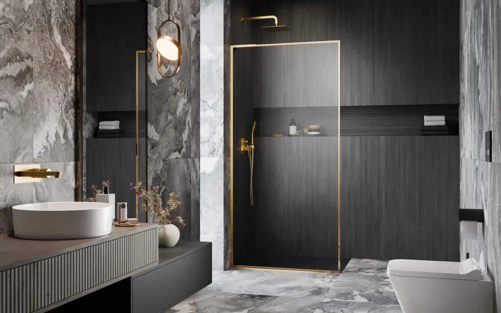 Modo F SL II Gold Walk-in arany zuhanyfal 85 átlátszó balos