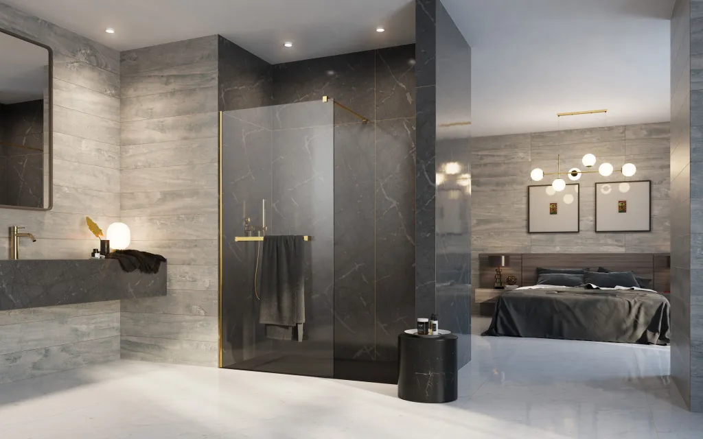 Modo New Gold II Walk-in arany zuhanyfal törölközőtartóval 80 átlátszó