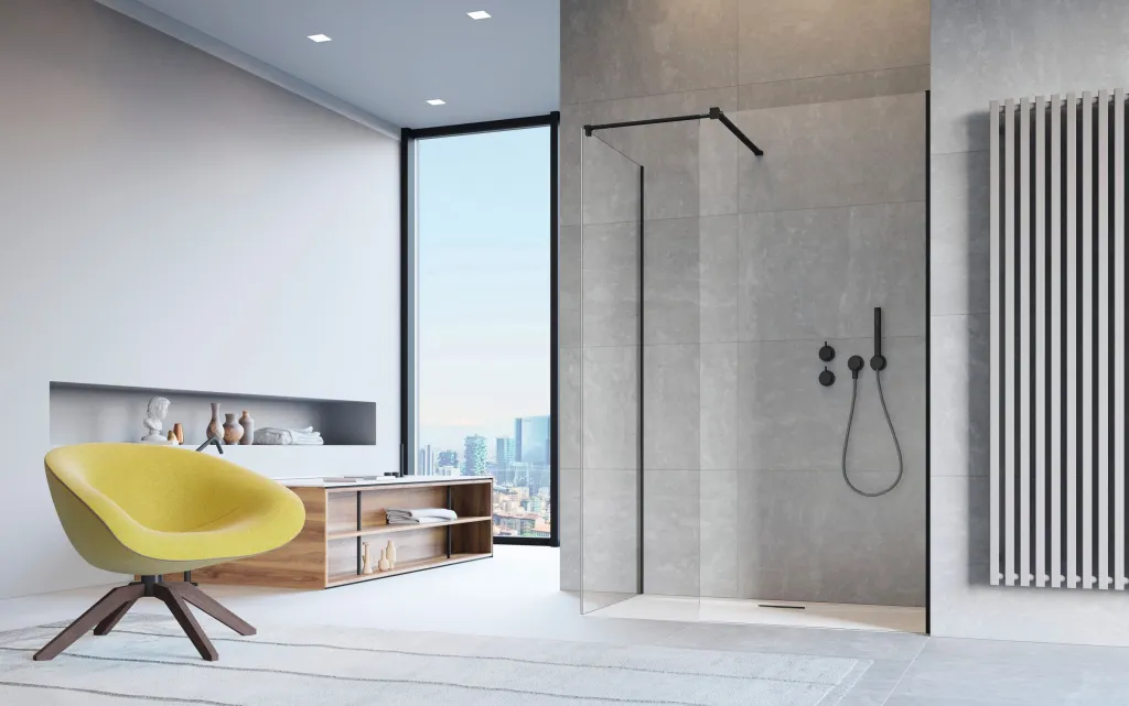 Modo New Black III Walk-in fekete zuhanyfal 50x50 átlátszó