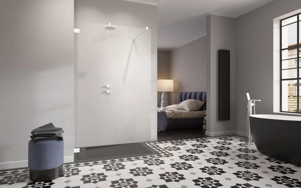 Essenza Pro White Walk-in fehér zuhanyfal 90 átlátszó