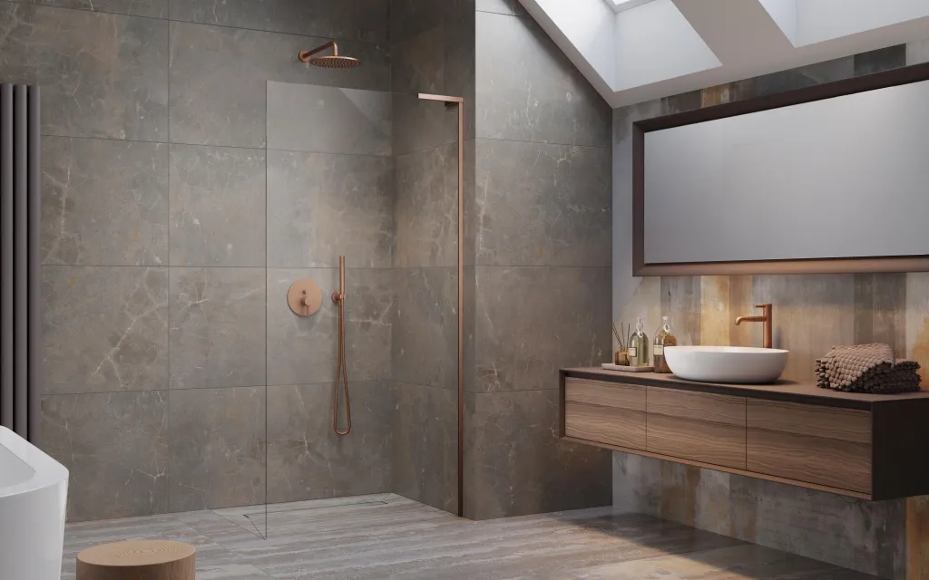 Modo SL II Brushed Copper Walk-in szálcsiszolt réz zuhanyfal 85 átlátszó jobbos