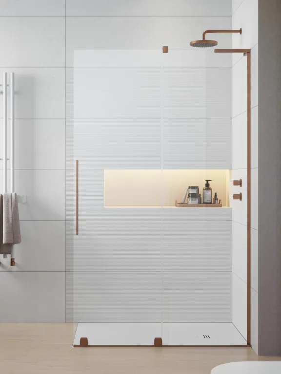 Furo SL Brushed Copper Walk-in szálcsiszolt réz zuhanyfal 100 átlátszó jobbos