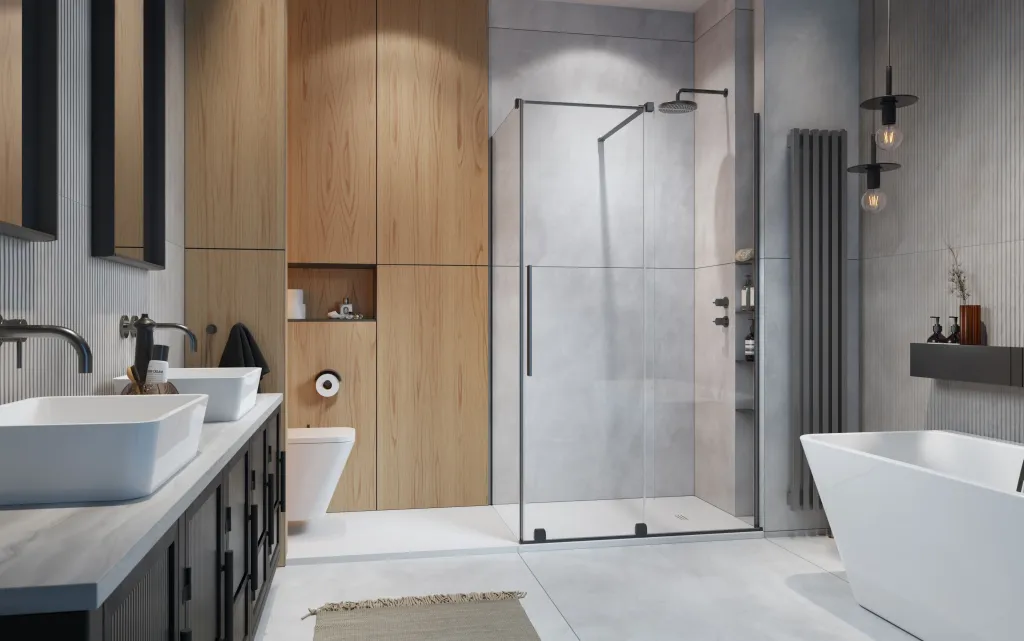 Furo Brushed GunMetal KDJ szögletes szálcsiszolt fegyvermetál zuhanykabin 90x75 átlátszó balos