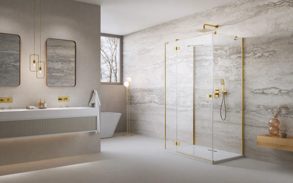 Essenza Gold KDJ+S szögletes arany zuhanykabin 90x120 átlátszó jobbos
