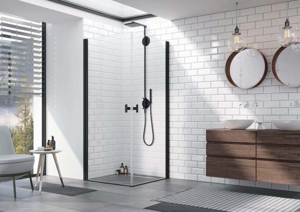 Nes 8 Black KDD I szögletes fekete zuhanykabin 80x100 átlátszó