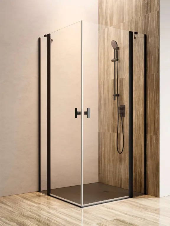 Nes 8 Black KDD II szögletes fekete zuhanykabin 80x80 átlátszó