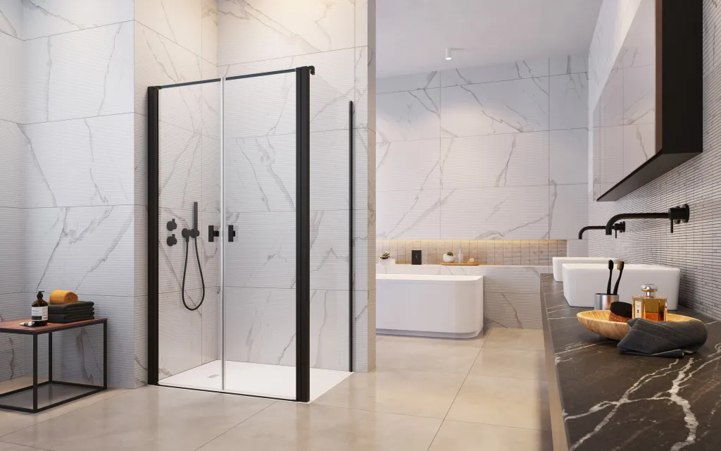 Nes 8 Black DWD+S szögletes fekete zuhanykabin 110x80 átlátszó