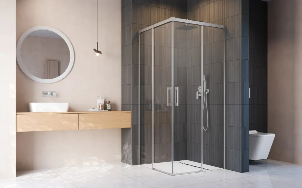 Idea Brushed Nickel KDD szögletes szálcsiszolt króm zuhanykabin 80x70 átlátszó