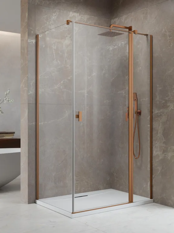 Nes Brushed Copper KDJ II szögletes szálcsiszolt réz zuhanykabin 100x70 átlátszó jobbos