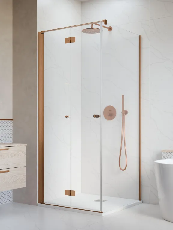 Nes Brushed Copper KDJ-B szögletes szálcsiszolt réz zuhanykabin 100x100 átlátszó jobbos