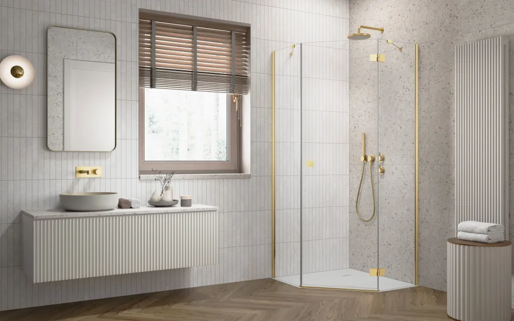 Essenza 8 Gold PTJ szögletes arany zuhanykabin 80x100 átlátszó jobbos
