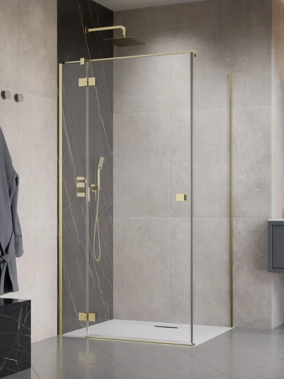 Essenza 8 Brushed Gold KDJ szögletes szálcsiszolt arany zuhanykabin 120x100 átlátszó balos