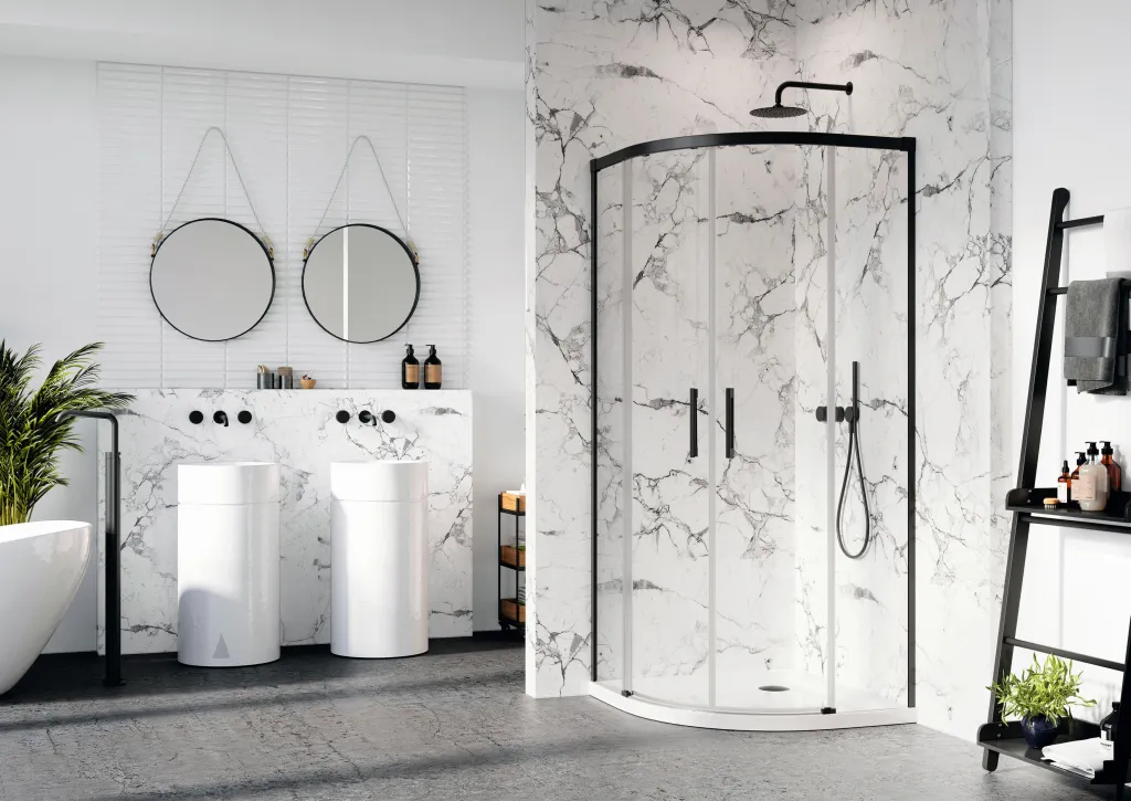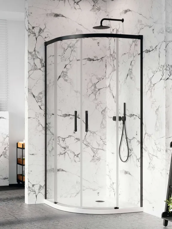 Idea Black PDD íves fekete zuhanykabin 90x90 átlátszó