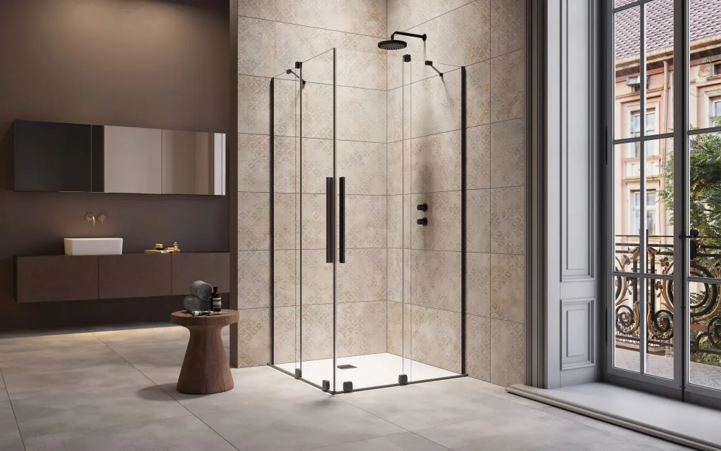 Furo Black KDD szögletes fekete zuhanykabin 80x100 átlátszó