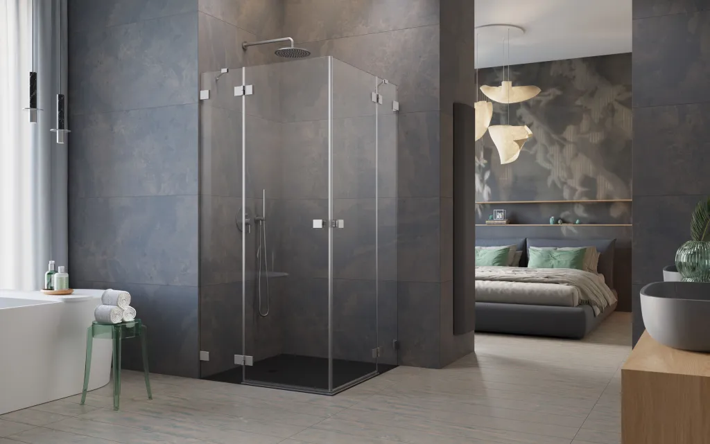 Essenza Pro Brushed Nickel KDD szögletes szálcsiszolt króm zuhanykabin 100x100 átlátszó