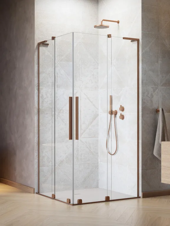 Furo SL Brushed Copper KDD szögletes szálcsiszolt réz zuhanykabin 100x120 átlátszó