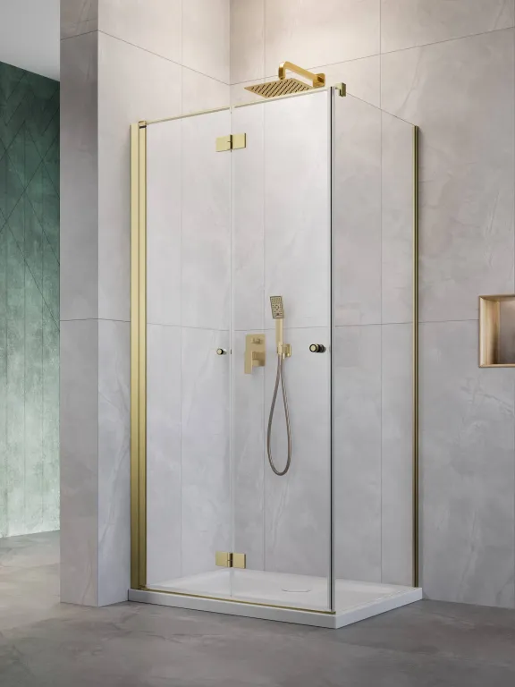 Nes Brushed Gold KDJ-B szögletes szálcsiszolt arany zuhanykabin 100x75 átlátszó jobbos