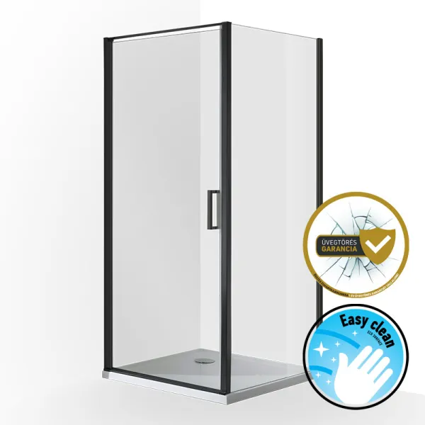 Sikertermékünk már fekete kivitelben is elérhető. Quadrum zuhanykabin nagy előnye, hogy a pivot zsanérszerkezet a teljes kabinon végigfut, így a masszív kialakítás mellett a biztonság sem elhanyagolható ennél a terméküknél. Az újszerű megjelenésének köszönhetően pedig az exkluzív kabinunk akár zuhanytálca nélkül is beépíthető. Tervezze meg Ön, hogy a tágas ajtó melyik irányba nyíljon, hogy ne kelljen a fürdőszoba átalakításán gondolkodnia. Termékjellemzők: