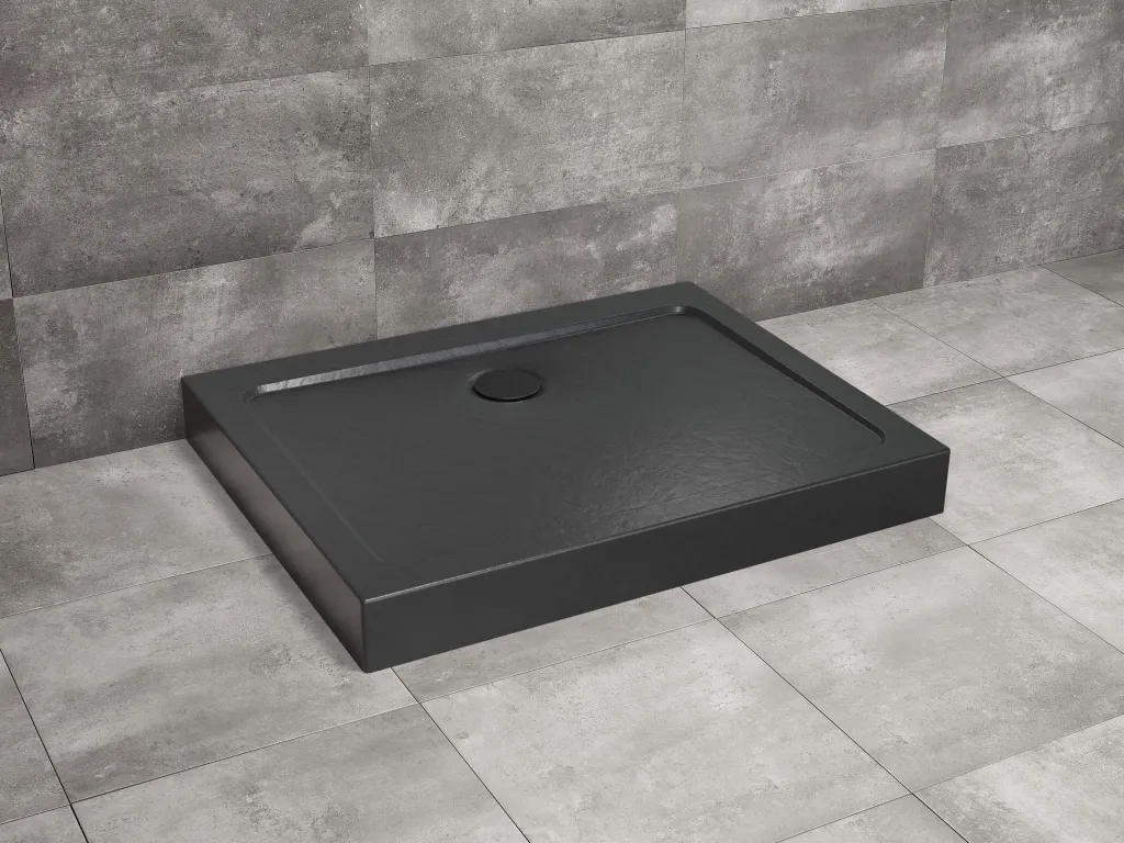 Doros Stone D szögletes fekete zuhanytálca előlappal 120x80 fekete, ajándék szifonnal